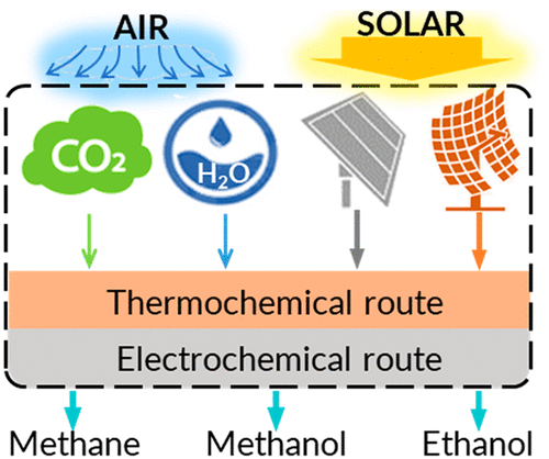 Xu, D.; Sullivan, I.; Xiang, C.; Lin, M. Comparative Study on Electrochemical and Thermochemical Pathways for Carbonaceous Fuel Generation Using Sunlight and Air. ACS Sustainable Chem. Eng. 2022, 10 (42), 13945-13954.