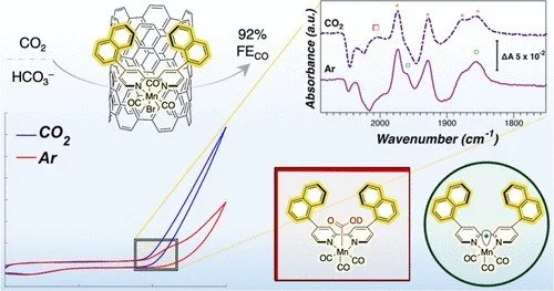 Lee, A. J.; DeLuca, E. E.; Kelly, E. B.; Taylor, J. M.; et al. Cambered Bipyridyl Ligand with Extended Aryl System Enables Electrochemical Reduction of Carbon Dioxide and Bicarbonate by Mn(bpy)(CO)3Br-type Catalyst Immobilized on Carbon Nanotubes. Journal of the American Chemical Society. 2025, 147 (9), 7411-7422.