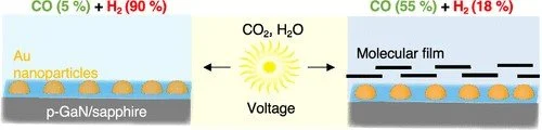 Li, R.; Cheng, W.H.; Richter, M.H.; DuChene, J.S.; Tian, W.; Li, C.; Atwater, H.A., Unassisted Highly Selective Gas-Phase CO₂ Reduction with a Plasmonic Au/p-GaN Photocatalyst Using H₂O as an Electron Donor. ACS Energy Letters, 2021 6, 1849-1856.