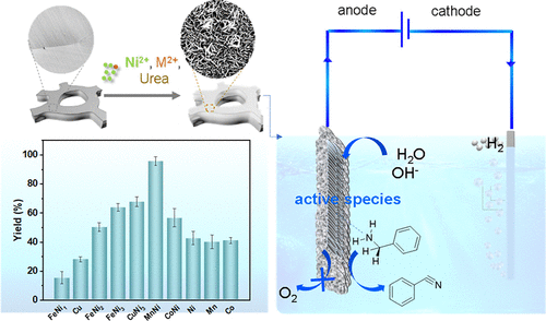 Sun, Y.; Shin, H.; Wang, F.; et al. Highly Selective Electrocatalytic Oxidation of Amines to Nitriles Assisted by Water Oxidation on Metal-Doped α-Ni(OH)2. J. Am. Chem. Soc. 2022, 144 (33), 15185-15192.
